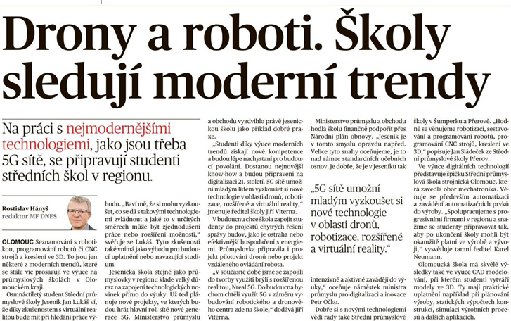 21.6. 2021 - IDNES - Virtuální realita, roboti či drony. Průmyslovky přechází na moderní trendy