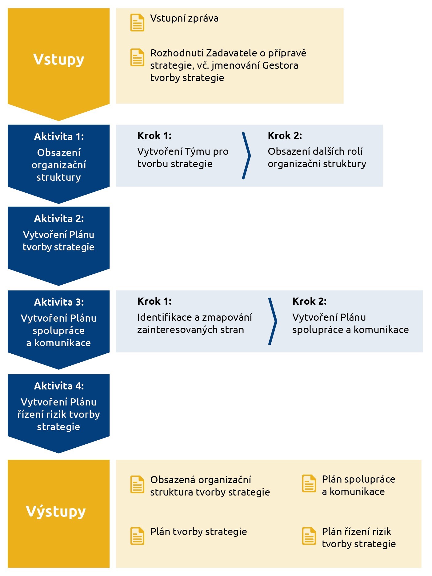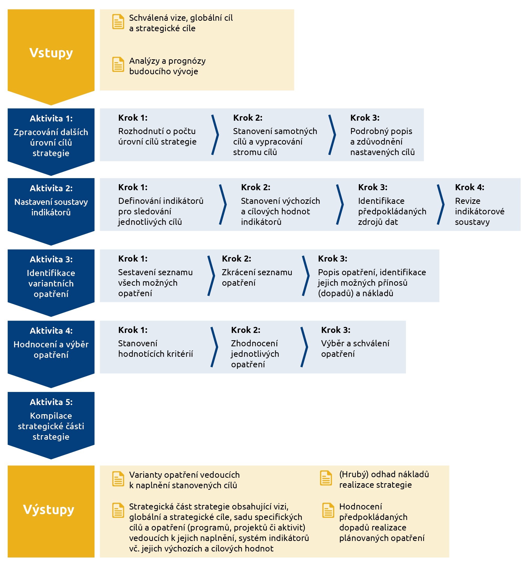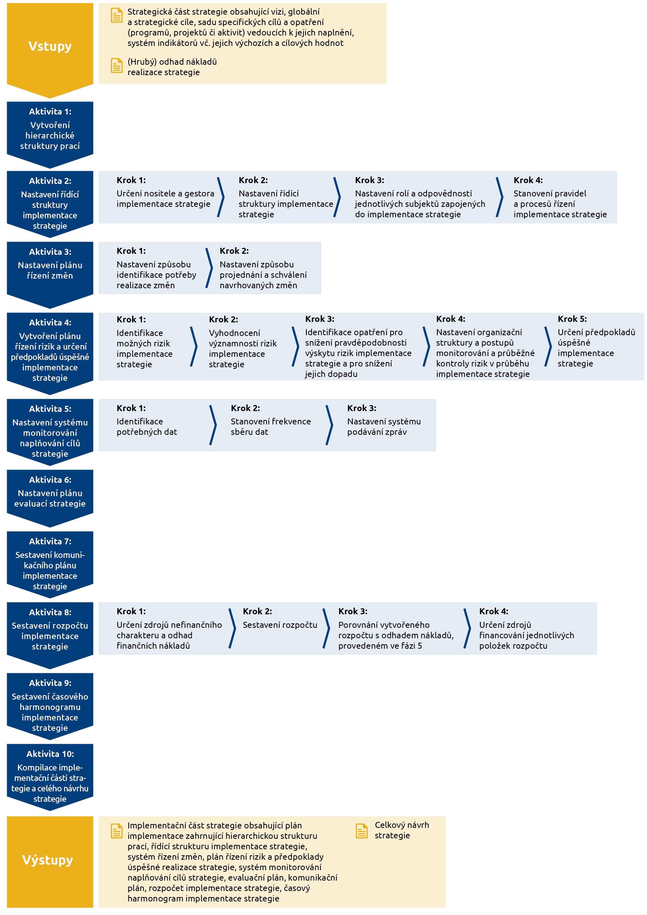 logický rámec tvorby strategie zahrnující jednotlivé fáze, jejich vstupy, aktivity a výstupy.