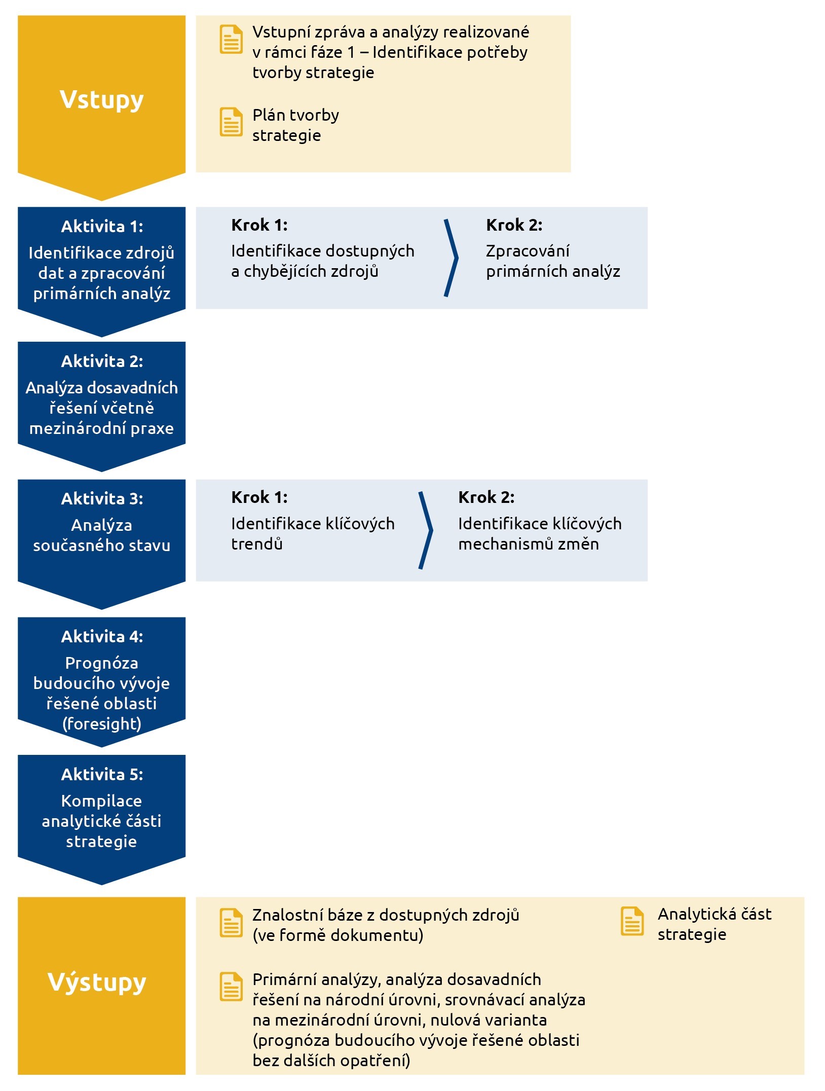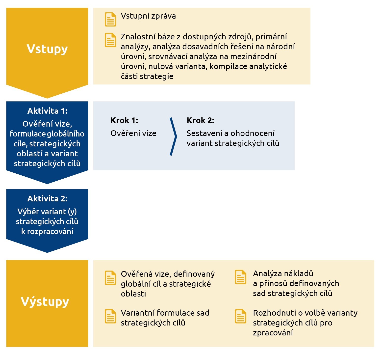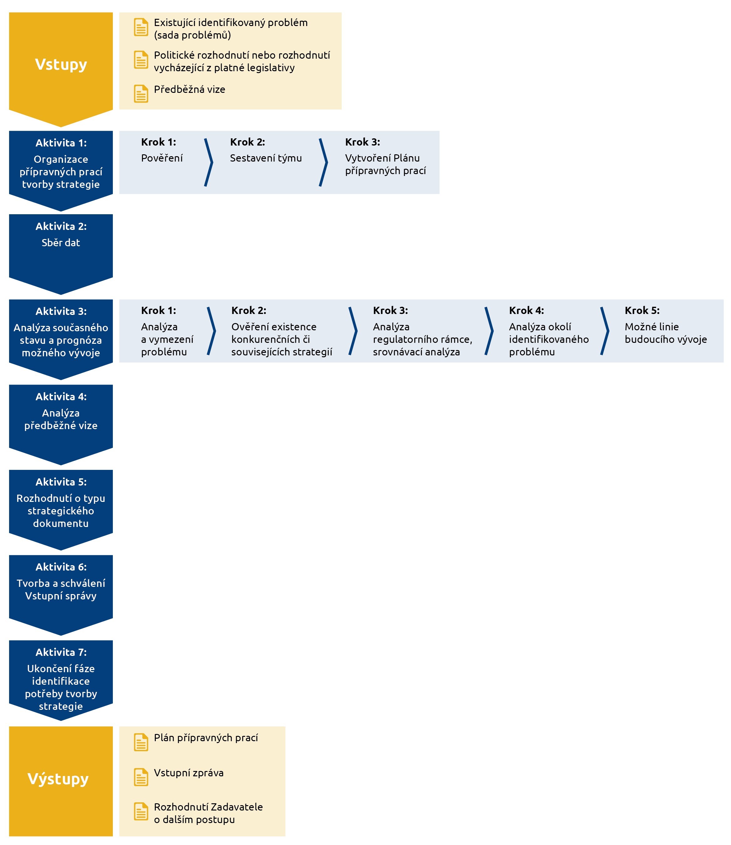logický rámec tvorby strategie zahrnující jednotlivé fáze, jejich vstupy, aktivity a výstupy.