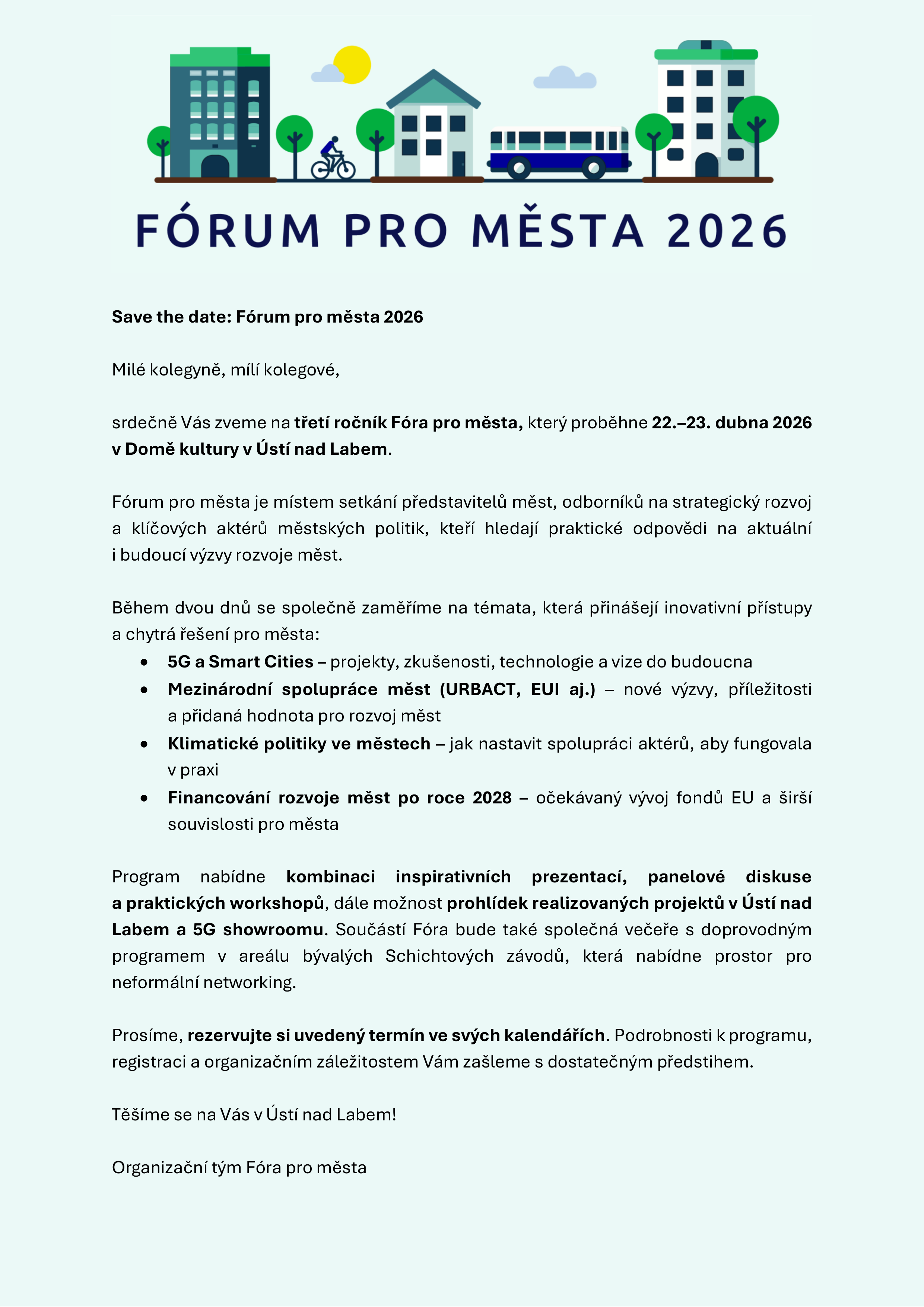 Avízo: Fórum pro města 2026