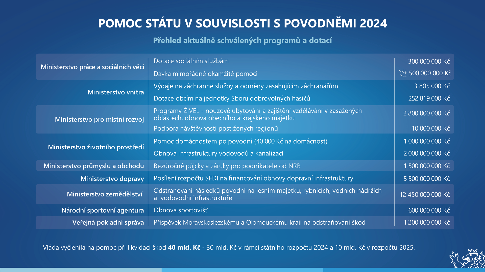 Aktuální přehled pomoci státu v souvislosti s Povodněmi 2024
