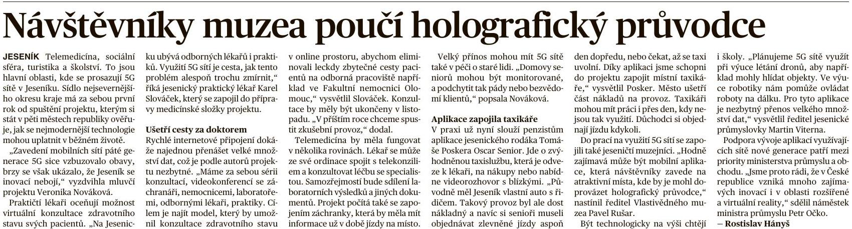 6. 8. 2021 - MF DNES - Návštěvníky muzea poučí holografický průvodce