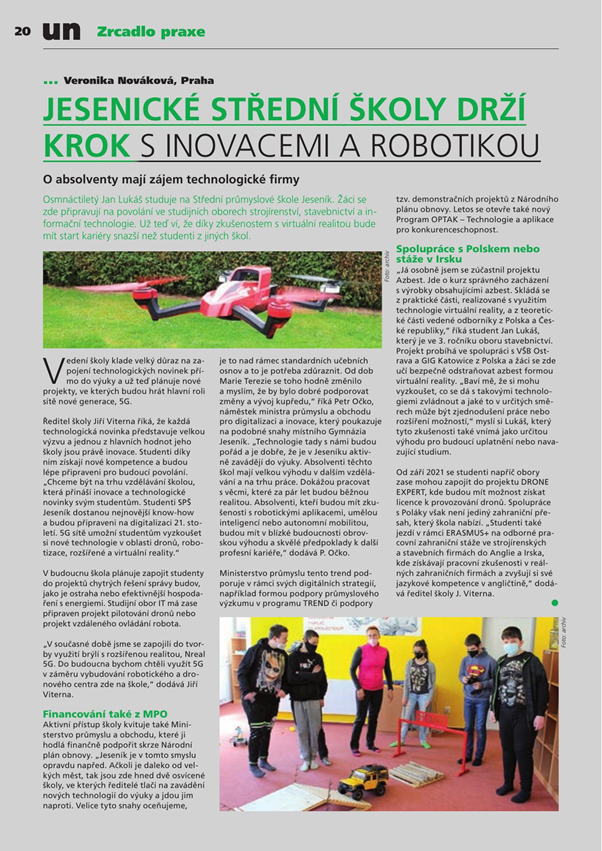 21.6. 2021 - IDNES - Virtuální realita, roboti či drony. Průmyslovky přechází na moderní trendy